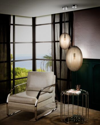 Lámpara de sobremesa OVILA cromo con cristal coñac de bombilla E27 Led Schuller.