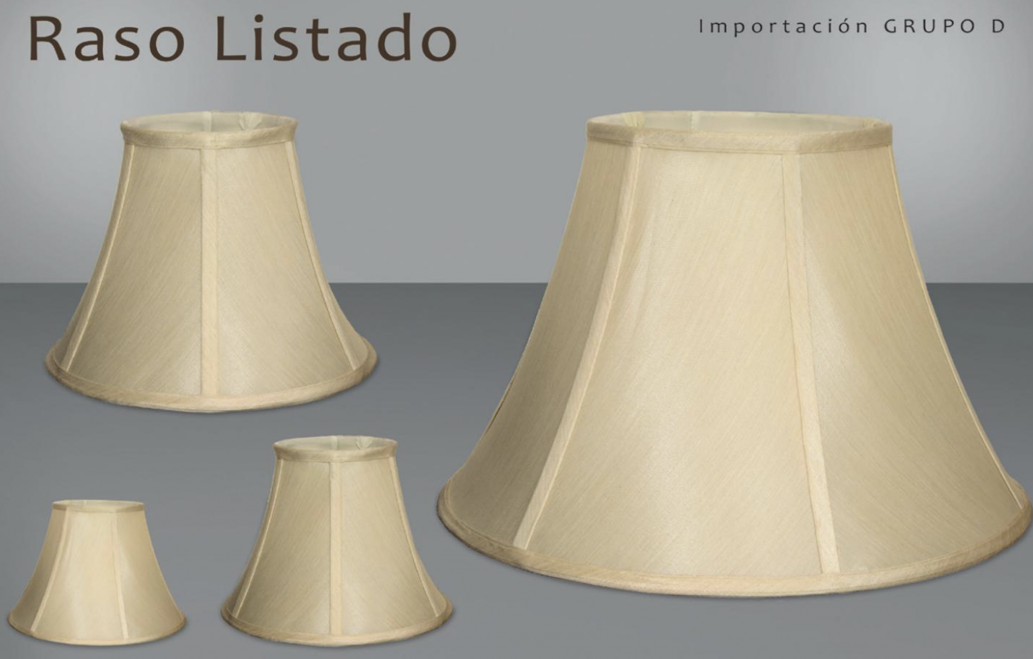 Pantalla realizada en tejido plata envejecida, en tela raso listado con detalle en aristas.