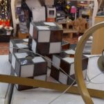 Tulipa de cristales ámbar y opal en diseño de cubo acabado tiffany