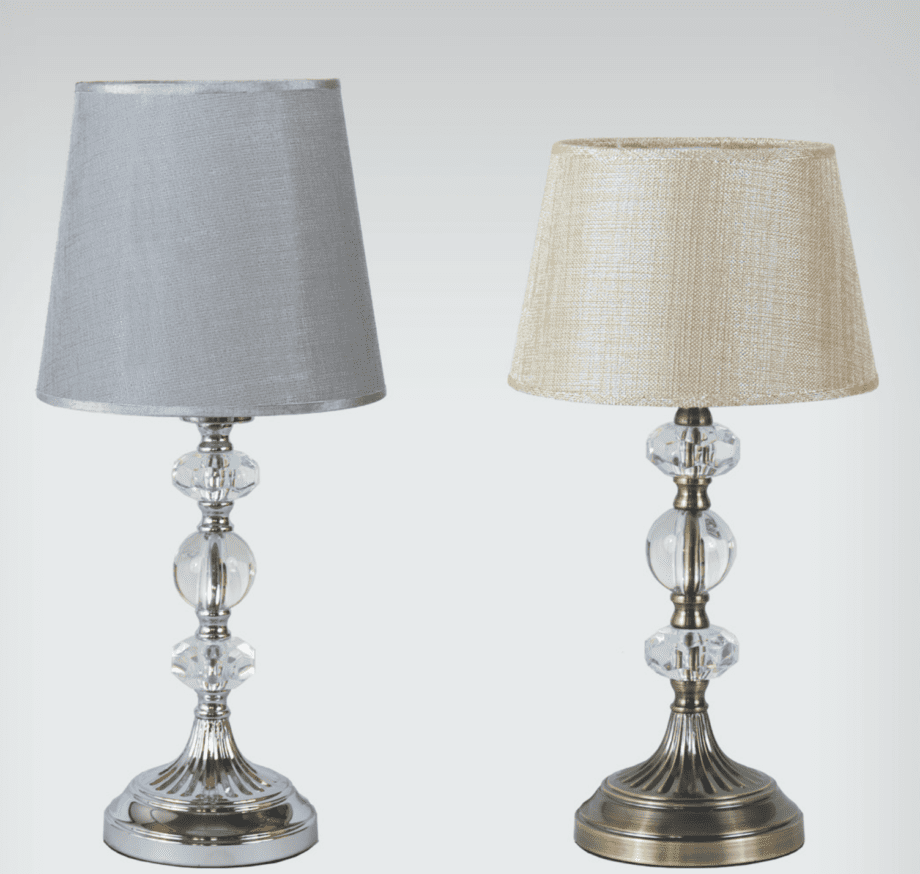 LIN – Lámpara de sobremesa elegante de metacrilato y pantalla hilo plata
