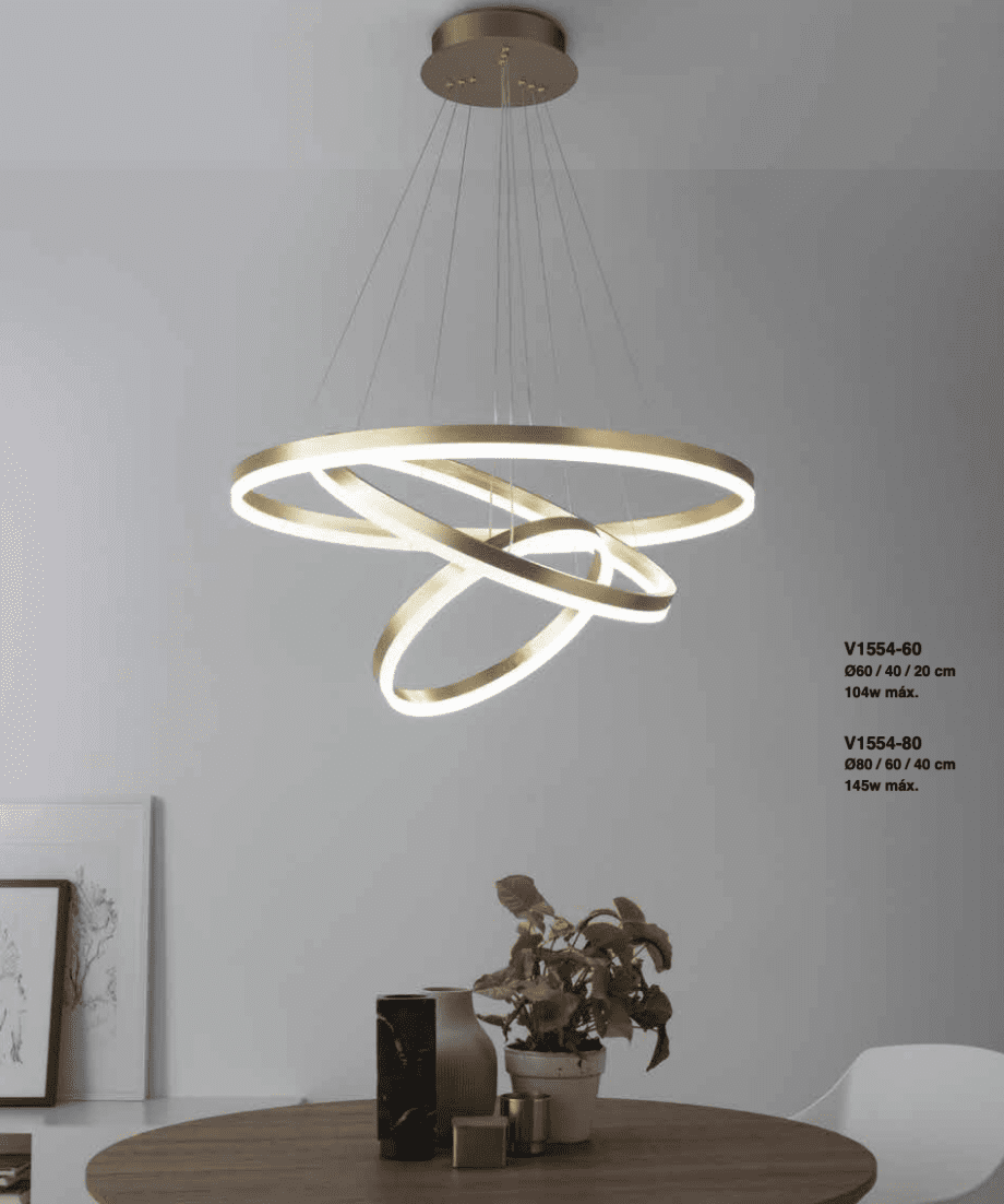 PIRAMIDE: Lámpara 3 aros redondos Led 60/40/20cm color Oro Anperbar. Dimable con mando a distancia en intensidad y temperatura 104W Led