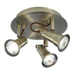 El foco de luz Eros antique brass 3 con diseño de placa de techo circular es una gran fuente de luz práctica para cualquier habitación del hogar.