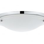 Plafón / aplique de pared Falima con IP44  protegido contra salpicaduras para habitaciones húmedas, ideal para baño o exterior, en cromo y cristal opal blanco.