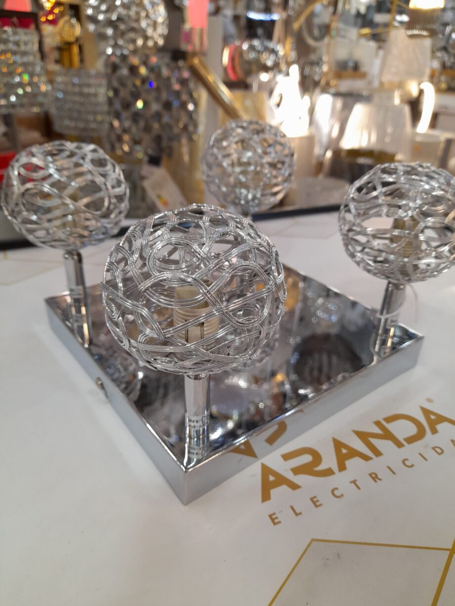 Plafón cuadrado cromo con 4 focos orientables de bolita metálica, para bombillas g9 Led, 56690-4 Globo Lighting. 20 x 20cm. STOCK DISPONIBLE EN TIENDA