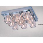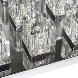 Lámpara en diseño de plafón con 9 cubos de cristal óptico transparente en base metálica cromo.