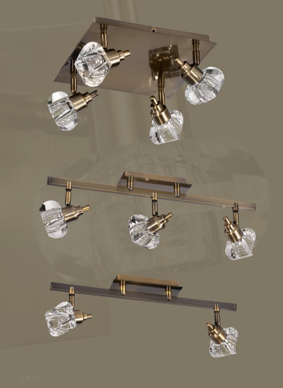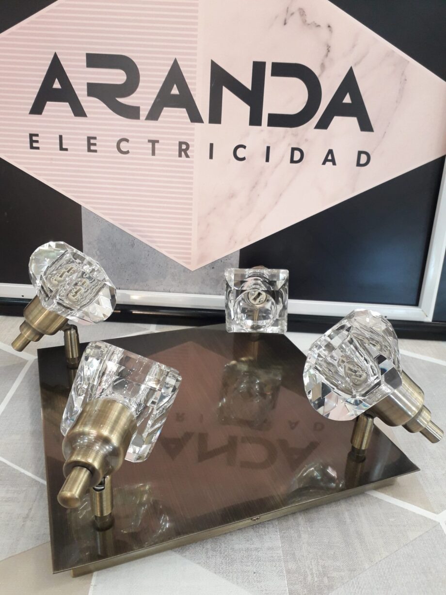 Plafón cuatro focos cuero y cristal g9 3836/4 Xiriluz. STOCK DISPONIBLE EN TIENDA