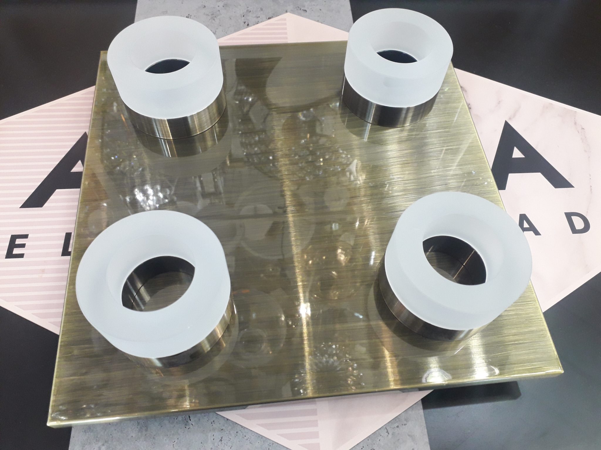 Plafón 4 x 6w Led luz neutra 4k, cuadrado bronce y cristal redondo, 2568-08 HERMA. STOCK DISPONIBLE EN TIENDA