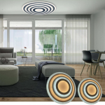 Acabado en blanco con varias proyecciones de luz concéntrico.
