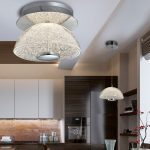 Plafón de 1 luz LED, realizado en metal cromado y aluminio. Tulipa semiesférica realizada en cristal, con textura interior de cristal granulado. 10W LED. 700 lm. 4.000°K.