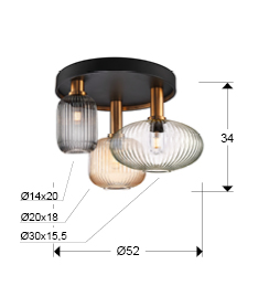 SKU: 225342 / 660 Plafón NORMA de base negra con 3 tulipas de cristal transparente smoke y fumé Schuller T09/25 Categorías: , , , , , Etiquetas: ,