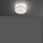 Plafón de techo redondo Lissa fabricado en tejido registrado RCIL por Anperbar (flexible, lavable y desenfundable) en blanco.