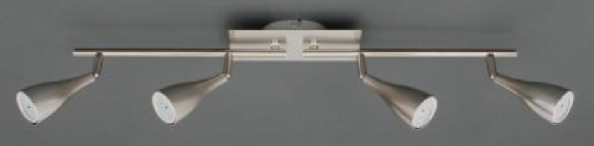 Regleta de cuatro focos articulado níquel satinado con toda la bombilla cubierta por tulipa metálica.