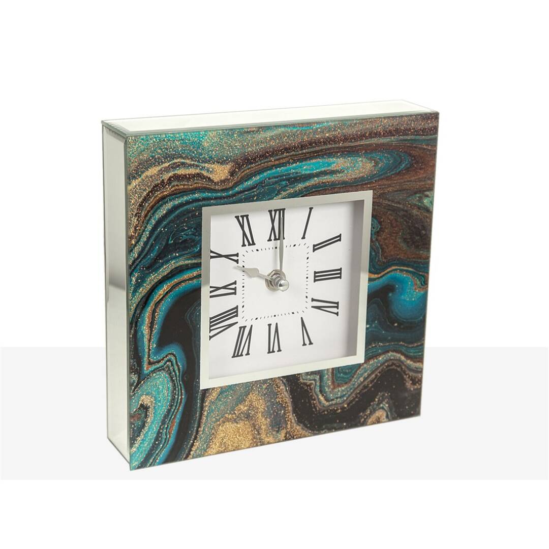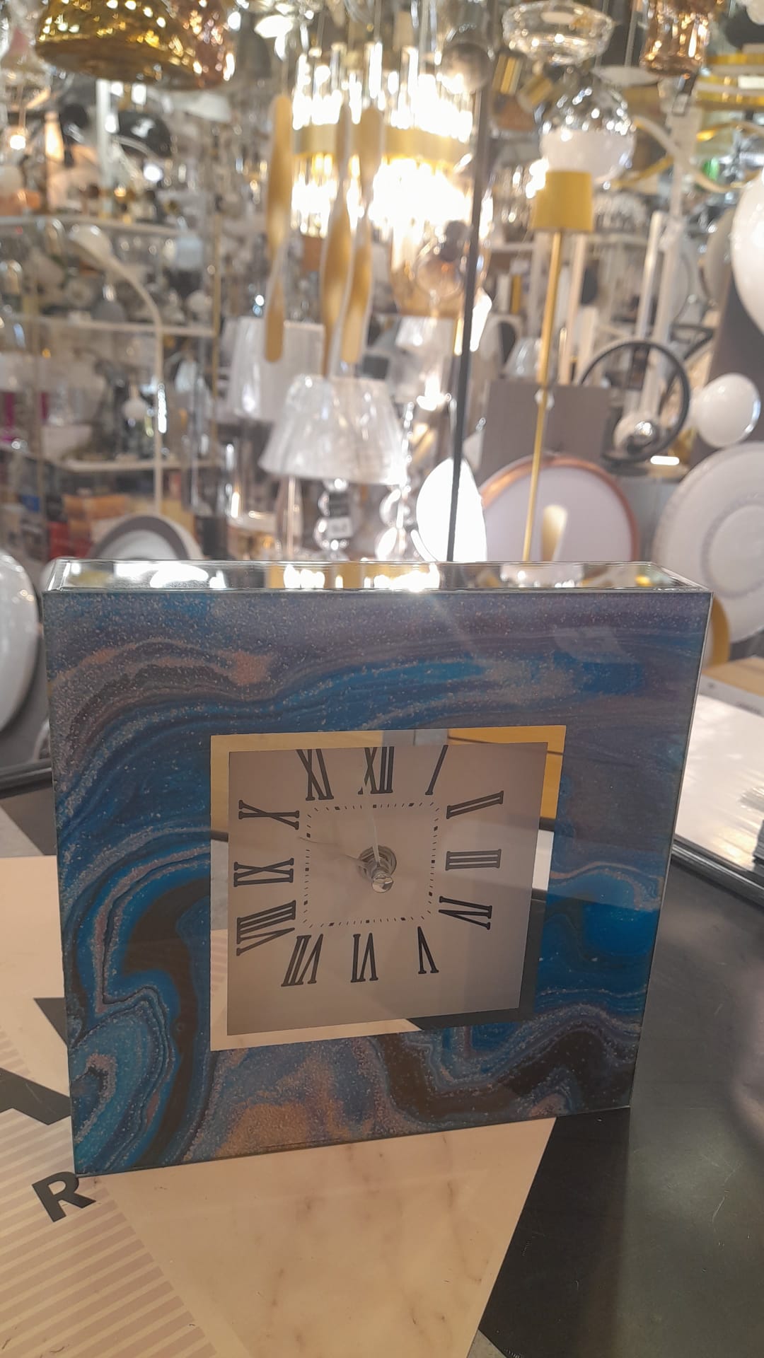 Reloj mesa cuadrado con espejo y tonos marrones y azules ROMIMEX