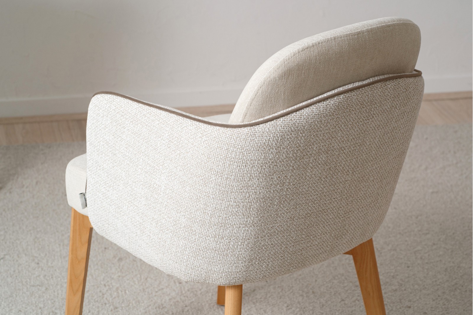 Set 2 Sillas con brazos en tono beige y patas de madera VP Interiorismo