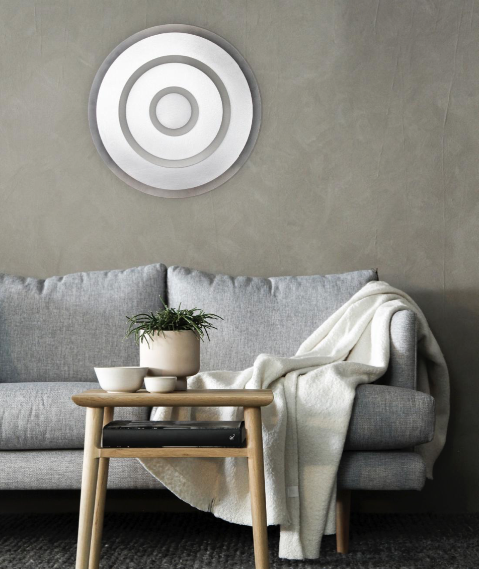SICILIA: Plafón Led y metacrilato de 50w Aluminio pulido con mando Acontract-Luz. 50cm.