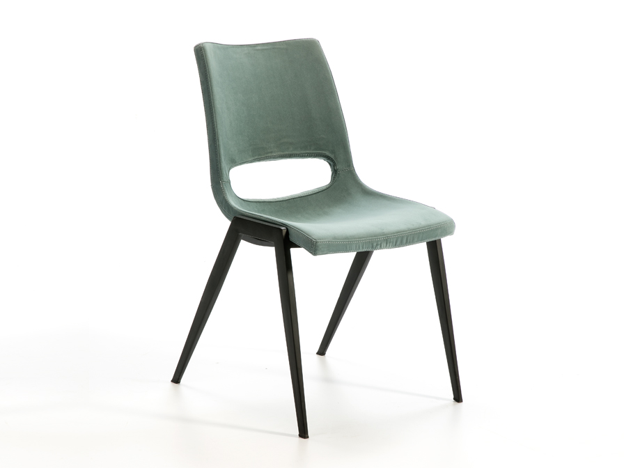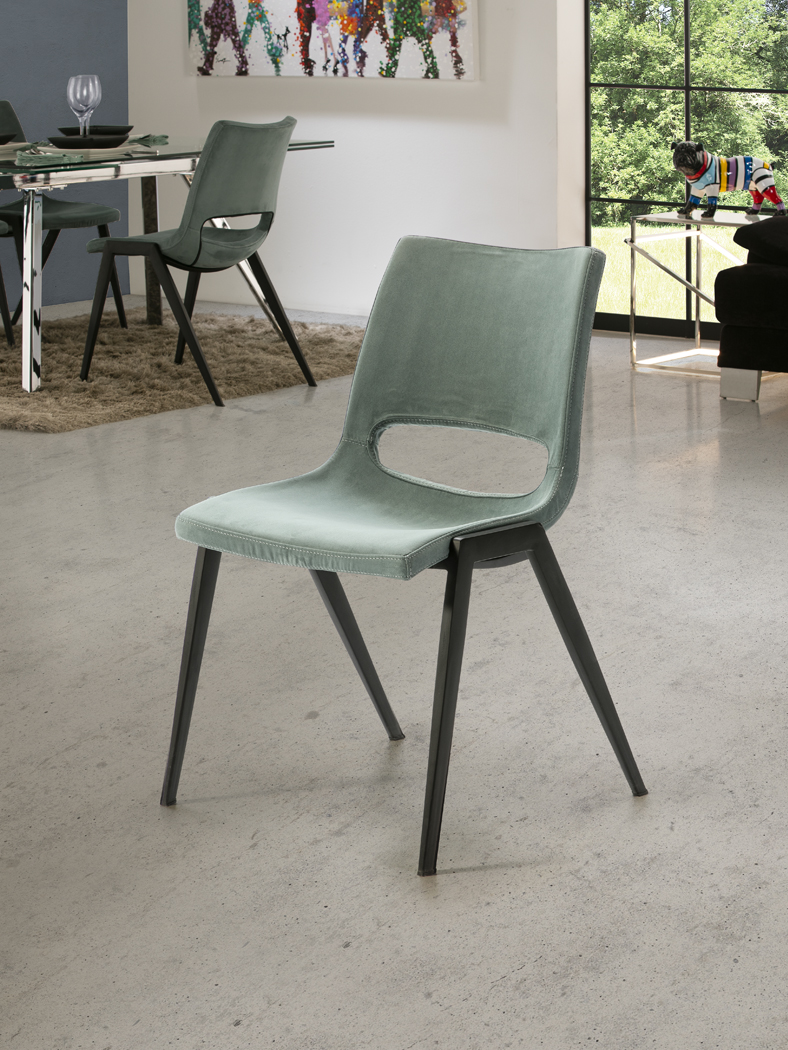 Silla ALOHA tapizado en textil azul aguamarina metálica y patas negro mate Schuller