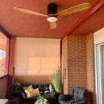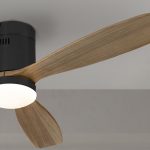 SIROCO – Ventilador negro y aspas madera color nogal dimable CCT Schuller de 132 cm
