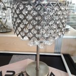 Sobremesa dorado viejo con cristal moderna con pantalla metálica cromo con cristales en forma de bolas talladas de gran brillo, ideal para mesitas de dormitorios grandes o aparadores o salón