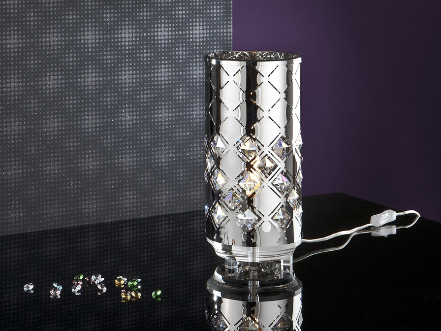 ALEXIA: Lámpara sobremesa cilindro en cromo y cristal Schuller 698233 1xE14. STOCK DISPONIBLE EN TIENDA