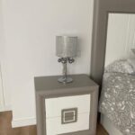 Interior con cadenas de cristal facetado y burbujas de cristal cromado.