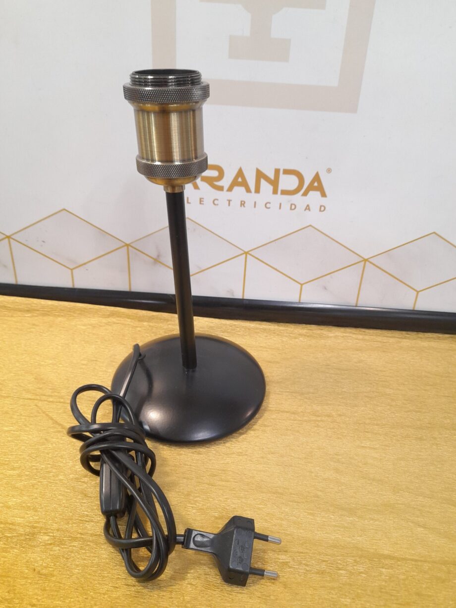 Sobremesa BAROLO negra con portalámparas en oro viejo decorativo