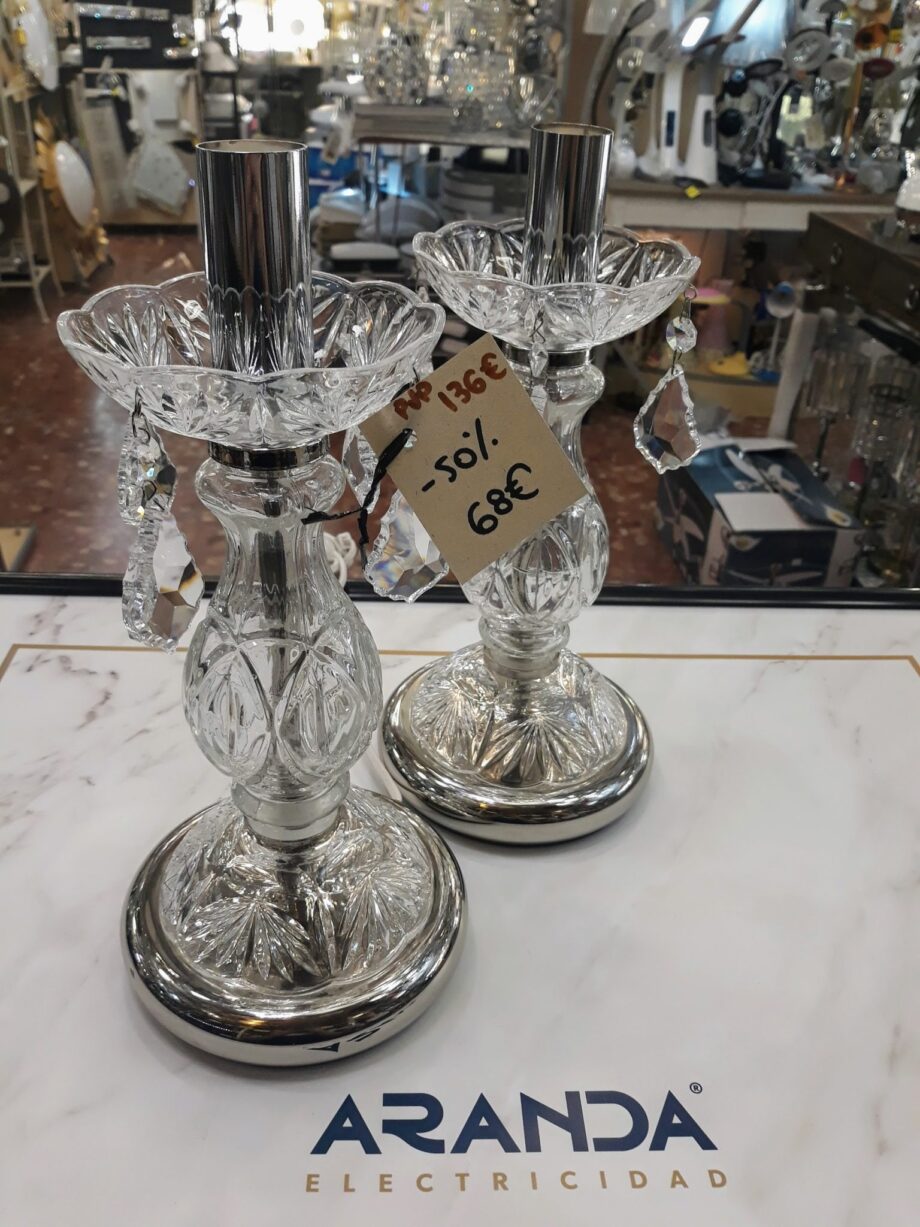 Ultimas sobremesas cristal italiano de la marca Voltolina con portalámparas vela decorativo.