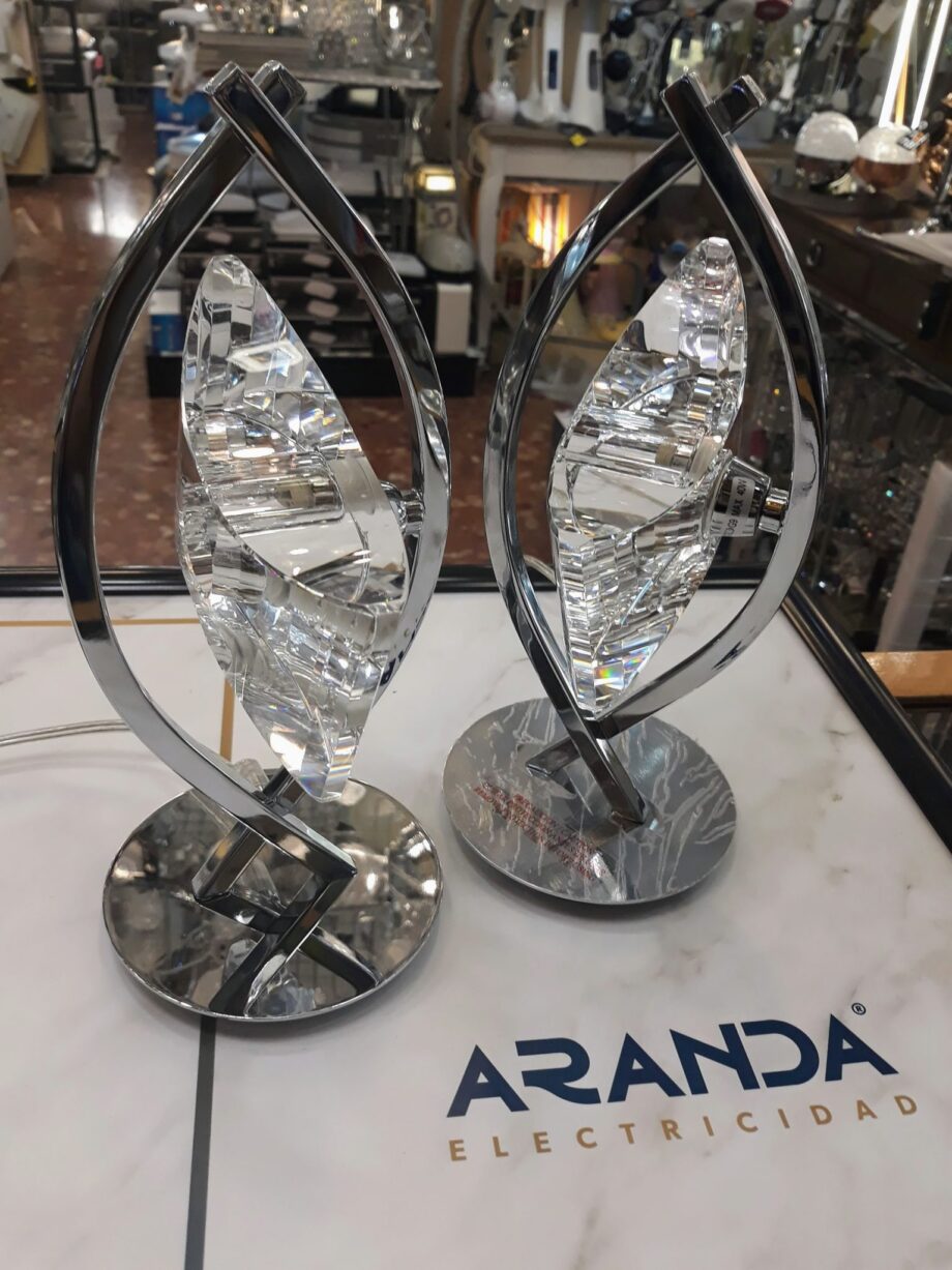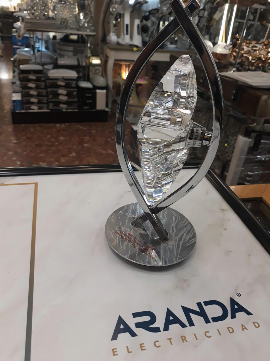 KROM: Sobremesa cromo y cristal tallado para bombilla G9, 0895 Mantra. STOCK EN TIENDA