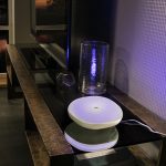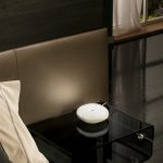 Lámpara de mesa realizada en ABS, con manejo de encendido mediante sistema de detección del gesto.