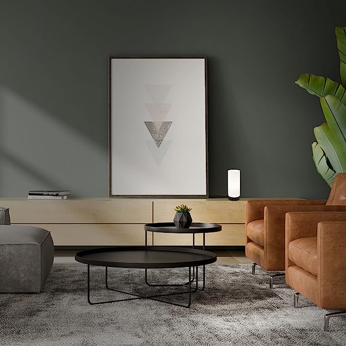 Sobremesa metálica de color negro mate con cilindro de cristal cilindro mate opal.
