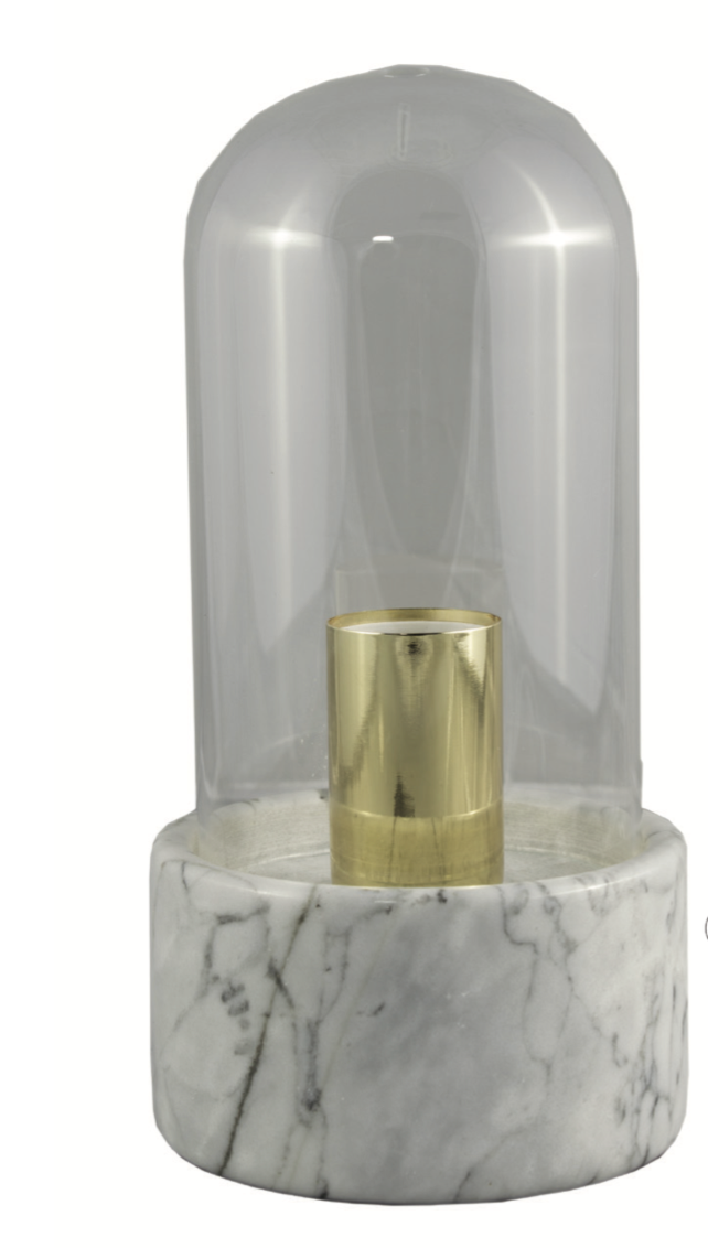Sobremesa pie marmol y cristal, portalamparas E14 oro Marbre Cupule. STOCK DISPONIBLE EN TIENDA