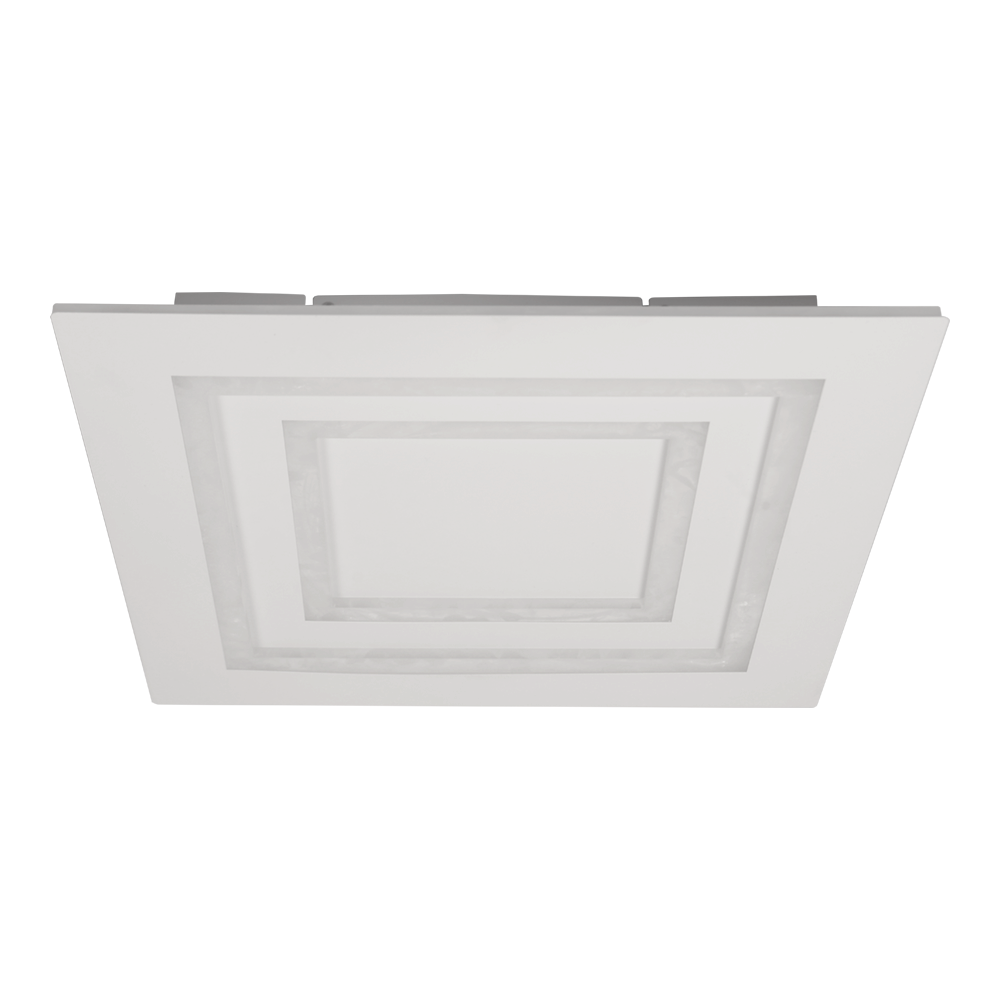 Plafón modelo TEO acabado blanco, potencia de 116 W, tamaño de 496 x 496 x 60 mm y hecho de metal y acrílico.