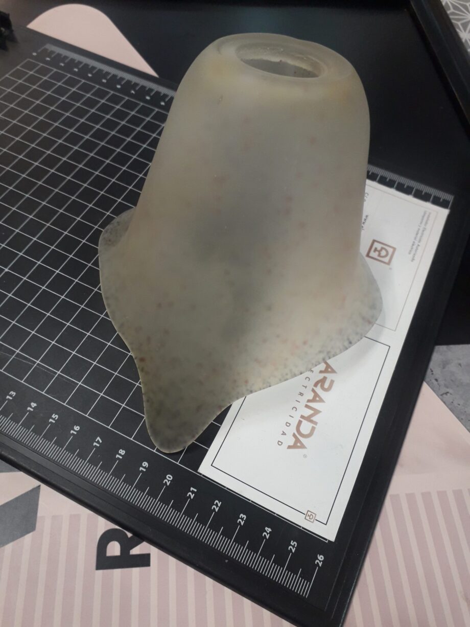 Tulipa cristal ámbar claro con filo moteado azul con 2,8cm E14, Oblicua, Ala ancha Fordecor. STOCK DISPONIBLE EN TIENDA
