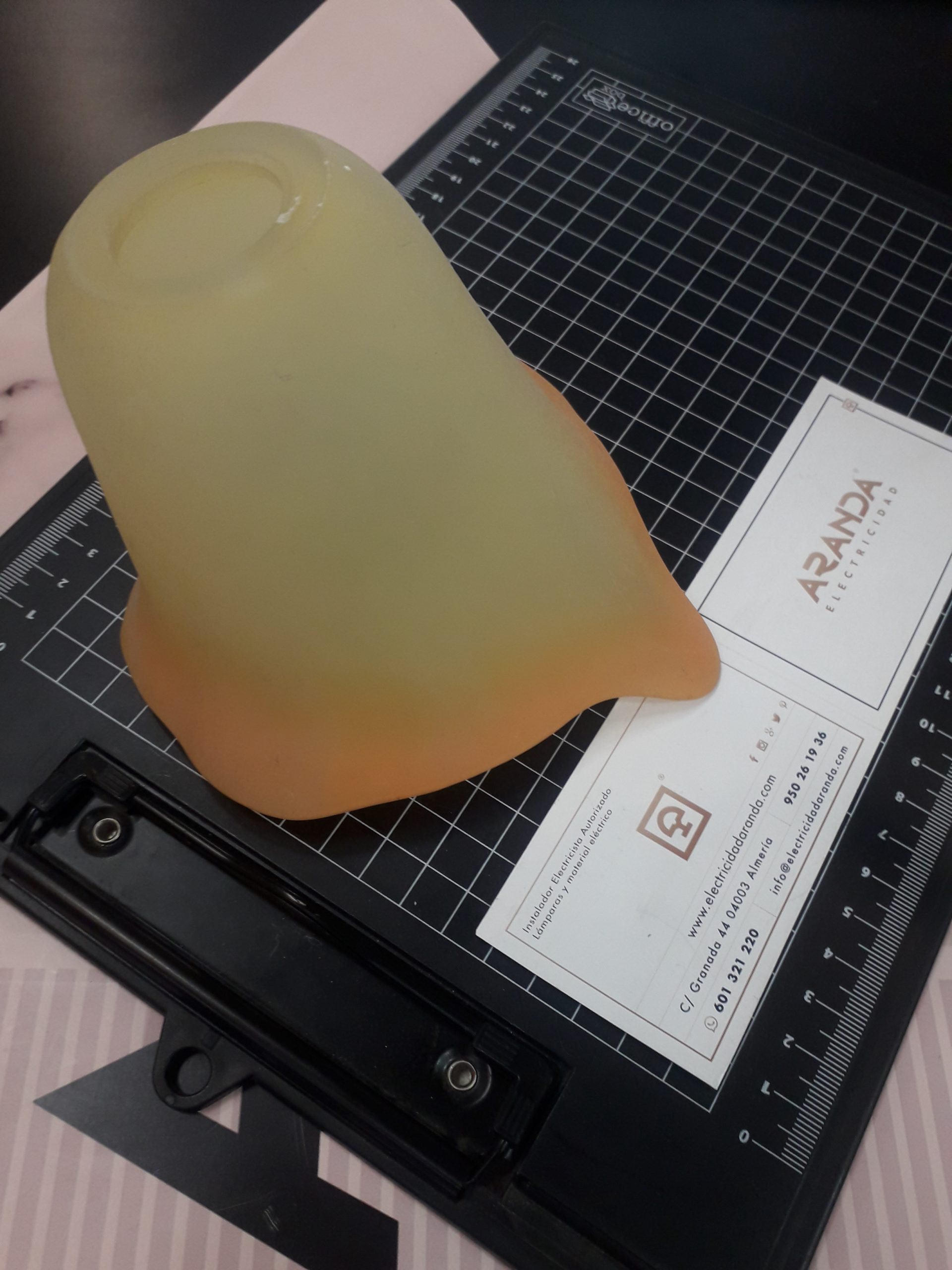 Tulipa cristal ambar con filo anaranjado con 2,8cm E14, Oblicua, Ala ancha Fordecor. STOCK DISPONIBLE EN TIENDA