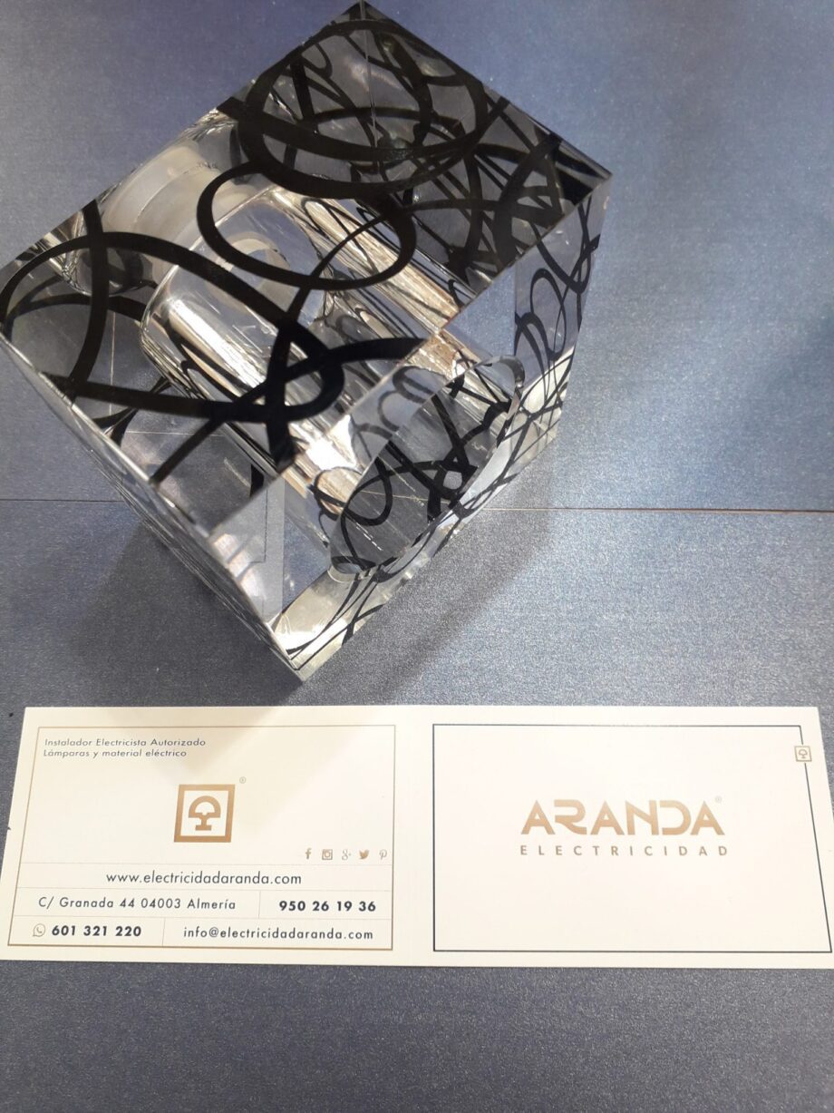 Tulipa #24 G9: cristal cubo transparente con grafias en negro, medida 9 x 9 x 6, N31 Xiriluz. STOCK DISPONIBLE EN TIENDA