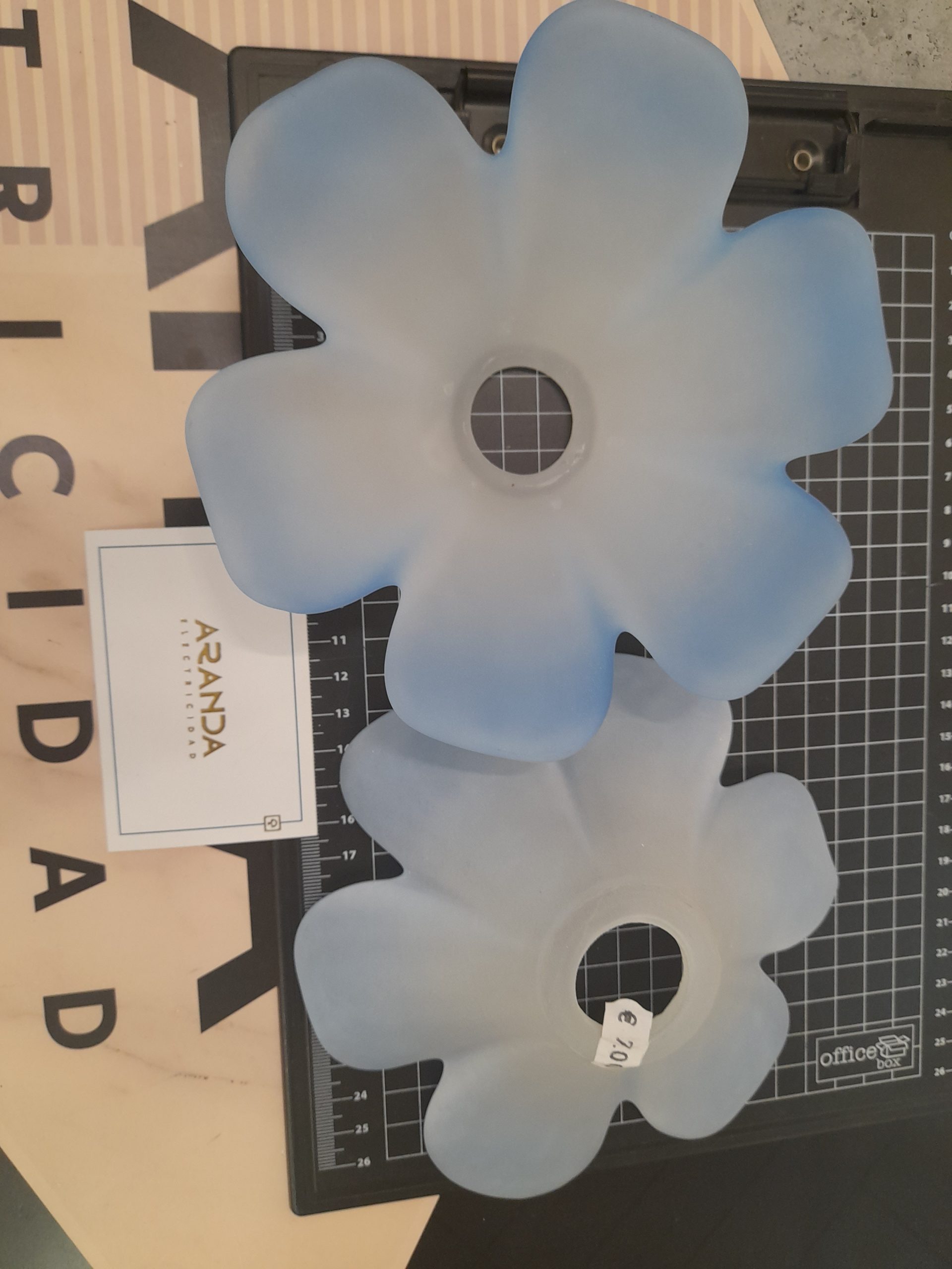 Tulipa cristal plana 6 picos redondeados blanca y azul de 17cm, para E14 Fordecor. STOCK DISPONIBLE EN TIENDA