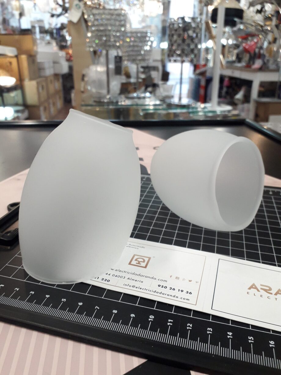 Tulipa de cristal oblicua acido mate E14, 7cm, T-29 Mercalámpara. STOCK EN TIENDA
