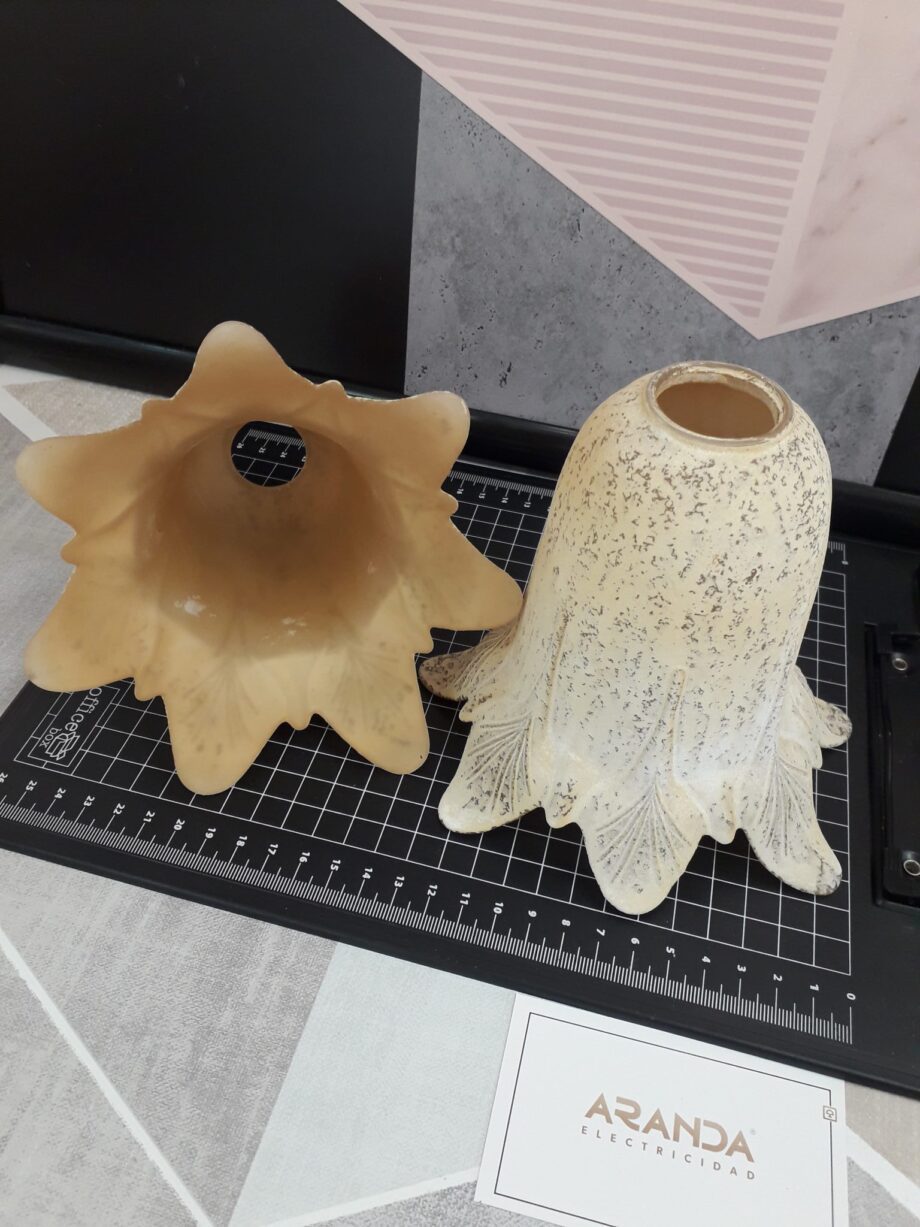 Tulipa de cristal envejecido para E14. OUTLET, STOCK DISPONIBLE EN TIENDA